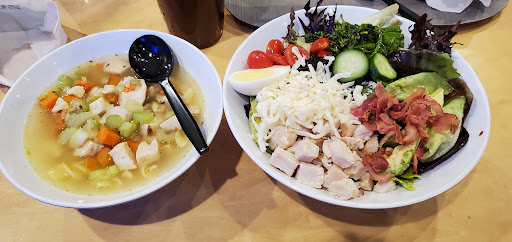 Things I like: Good options of healthy food Usually quick service Delicious red pepper lobster bisque Things I dont like: -Ordered the lobster bisque and I kid you not I had ONE chunk of lobster. Dont let the million chunks of tomato and whatever other veggies fool you haha. Not good for the price and considering the name is "lobster bisque" -When you order a large salad because the regular salad is small and youre more hungry that day you find out that "large" pretty much just means an extra scoop of toppings and no extra lettuce and also I didnt even get the extra scoop of toppings so pretty much just paid way more for the same salad. -If youre pescatarian like me and you want a salad without chicken or beef you HAVE to have a salad with berries cuz apparently thats all vegetarians like on their salads. Haha okay there is a choice to build your own salad but it would be nice to have an option of like a "garden chop salad" to easily pick from on the menu without chicken instead of their current choice of berry salad, nuts and berry salad, mango berry salad, beets and berries salad BERRIES BERRIES BERRIES. Like come on just because I dont want meat doesnt mean I just like berries!!