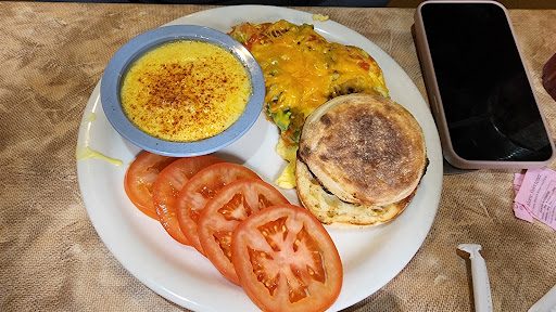Fast service, huge portions, great food. Walked in Sunday at noon, it was busy, but we were seated immediately. The breakfast potatoes were terrific, lots of crunchy edges. Biscuits and gravy were the best. Derek was a the perfect server, anticipated our every need, which worked out well since we had limited time. He even sent us on our way with to go drinks. Glad we found this hidden jewel!
