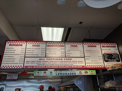 This is one really great tasting burger joint. The patties are a little greasy but the flavor is outstanding! All you do is get a hamburger, which comes with 2 patties, or a junior burger, which just comes with one. Then you tell them what you want on it. Its that simple. Very good food! I would recommend that if you were going to get an order of fries that you get the small order. They fill this cup up with fries and then they usually put another big handful on top of that. Its enough for 2 people to share.