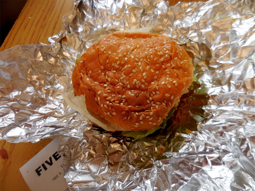 Five Guys has the best fries. Its a fact. The fries are cut from whole potatoes - skins and all. The size of the fries are the correct size. Other places cut their fries too thin - looking at you In-N-Out and Smashburger. Five Guys provide the option of Cajun seasoning on their fries and that is the way to go. If you want ketchup they have the awesome catsup pump so you can fill several paper ketchup containers with delicious catsup. They also have malt vinegar for our friends from across the pond. The burgers are smaller than some competitors, but more than make up for it by offering fresh sliced jalapeños. You can dictate quite a few exotic burger toppings like grilled onions, grilled mushrooms, the aforementioned fresh jalapeños. Missing however is a fried egg like the very best burger joints offer. Ordering tip: unless you specifically order a "little" burger youll get a double patty. Its embarrassing to have to say the shriveled word "little" before the Thor-like word "burger", but the double patties are unnecessary due to all the glorious additions, and you can save some $.