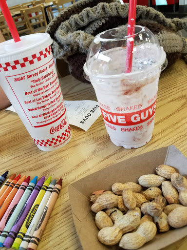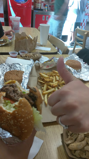 I go to the Five Guys in Tempe more often than this location, but the burgers at Five Guys are the most flavorful around. Ive tried In n Out and was horribly disappointed by the dry tiny piece of "meat" they gave me. Five Guys is the exact opposite. They are fresh juicy patties that taste great. I also love the fries made in peanut oil. I only get a single patty burger and the price is great. When I go there with my wife we can both get a burger and a drink, and we usually share a regular fry, because theyre huge! (at least at the Tempe location they always are, not sure that they give you as much here). We end up quite full for less than $15, and it really is the best tasting burger weve found anywhere. I would choose Five Guys over In n Out, Red Robin, or any other fast food burger place. Its more flavorful, fresh and cheaper, so for me it wins.
