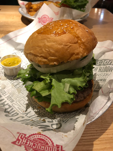 Better then i remember. Its been at least 20 years since Ive been to fuddruckers and i didnt like it back then. So, we thought we would try it again, and to our suprise, It was good. I had the veggie burger and my husband had the bison burger. He liked the seasoning that is on the fries and i didnt care for it so next time Ill try the sweet potato fries. The sweet cherry cream soda pop is very good and the milk shakes are nice and thick.