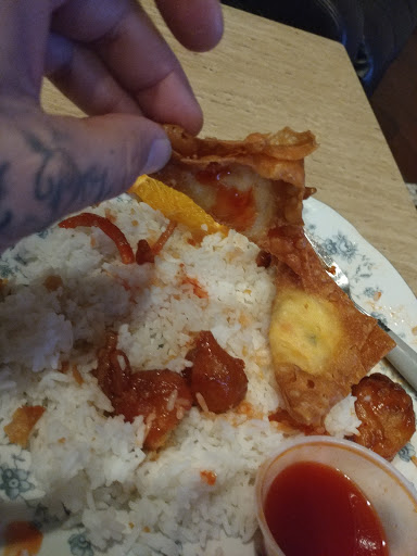 Had the lunch special, sweet & sour chicken. Chicken was tasteless, dry and tasted like it was in the freezer a couple years. Coating very oily and tasted like it needed changing. Rice had no flavor except for oil. Didnt even try the egg roll after seeing my sisters face after she tasted hers. The sweet and sour sauce had the taste of a tin can. We both had about 5 bites of our lunch. The appetizer of crab puffs was ok but still had the old oil taste. Our doggy boxes were put down the garbage disposal as soon as we got home. The only thing good was the personality of the owner and the low prices for the quantity of food. I dont know how this place gets a 4.6 rating. Trip Advisor even rates it above Pei Wei. Seriously!? People either have no taste or they like the quantity and pricing.