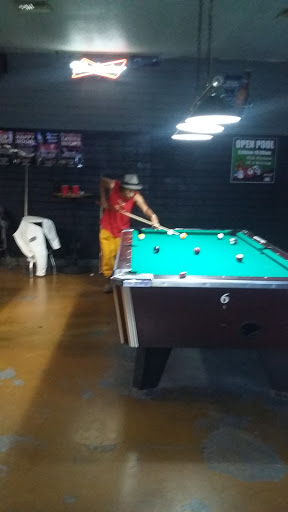 A true dive bar! Good drink specials and six pool tables. They dont have much food, but if youre hungry theyll throw a frozen pizza in the oven for you. Friendly staff, too.