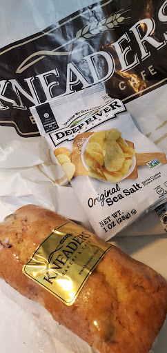 I had never been to a Kneaders before and had no idea what to expect. When I walked in I was immediately overwhelmed by the beautiful display case of pastries. I was also taken in by the aesthetically places shelves that displayed kitchen ware, and some jewelry, for sale. The staff was very friendly and I received my food quickly. I first tried the chips, which were surprising. They had a lot of flavor, but they werent crunchy. Ive never had a chip that wasnt crunchy before. They had kind of a cheesy flavor. Im not sure if its how the chips were prepared or if mine were stale. Either way, they were very flavorful. Imthe sandwich was the chicken pesto panini. Again, lots of flavor, it was definitely tasty, but the bread was on the soggier side. I was expecting a little more crunch. For desert I got an ooey gooey bar, which was delicious! So all in all, my experience wasnt bad. Ill definitely go back.