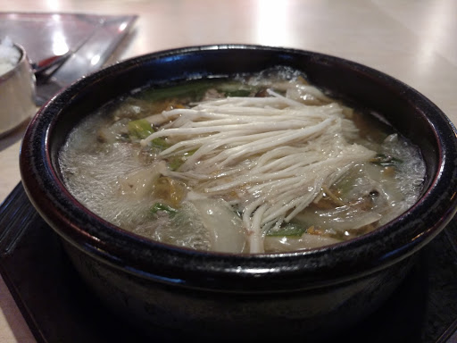 Guk Mandu was excellent with home-made noodles and tasty broth laced with egg, onions, beef, and noodles. Dol Sot Bim Bim Bop was shockingly inferior. One tiny sliver of beef, few toppings, and rice uncrusted at bottom of clay bowl. From Korean restaurants from Vancouver, San Gabriel, to Cleveland, this was the worst preparation of this dish we have seen and they excused it as the typical style of Korea not having much, if any beef (or vegetables!). The soup had more! Table vegetables were interesting and enjoyable. Windows and floors needed cleaning, although this can be said for many places in Arizona.