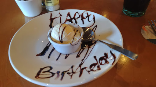 The 1 bartender was outfreakinstanding the other wasnt and it went downhill from there. The table was dirty I said 3 times to the hostess the table needs cleaning all she wanted was too get through her speech came back with a wet rag that left the table wet had to ask her to dry it off. The the waitress took it apon herself to place our appetizer order before we could decide which one we want on the kiosk. Went downhill even farther went she sprayed sparkling water all over the table opening it. Appetizer and soup were cold and she forgot and was late with extra sause we ordered. Management offered free deserts which was brought out without clearing the table no room to put it, coffee look like tea because it was ran thought without placing new grounds in. Espresso they replaced it with was cold. No body could make this up it was just bad!!!