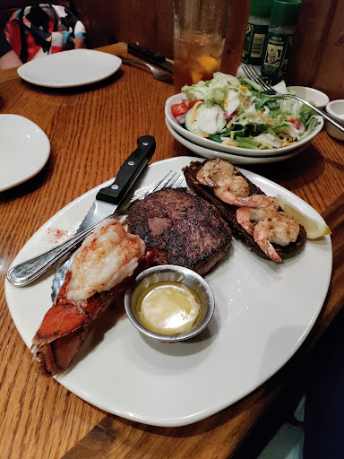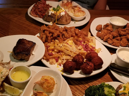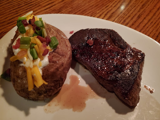 My husband took me to this location last night for valentines day. It was okay, we had a 40 minute wait around 8:30 pm kinda expected but still kind of ridiculous. We get seated place our order in a timely fashion and get our drinks bread and appitizers. They were great, now my husband and i ordered the same thing except for sides an 8oz steak cooked medium, more on the medium rare side. we get our steaks and they arent even 8oz more like 6oz . they were burnt on the outside and it was cooked to about MEDIUM WELL it was also very dry. I had also ordered a loaded baked potato, and let me tell you that potato was not cooked all the way through. close but it some spots it was still raw. We also asked for A1 sauce for 2 people. They brought us 1 little bowl like they serve their butter in filled maybe 1/3 of the way up. It wasnt even near enough for 2 people... The waiter did alright, but most of the time i had to get his attention and make a request for more soda or bread or butter or sourcream. he never stopped by our table to check on us. even when he was done dealing with the table across the aisle from us. we paid 50$ for 3 great sides and 2 terrible steaks and an undercooked baked potato. Very saddening. We didnt complain, because we didnt want to ruin anyones valentines day. and it wasnt really the waiters fault. but still, we will be going to a different location or a different steakhouse altogether next time