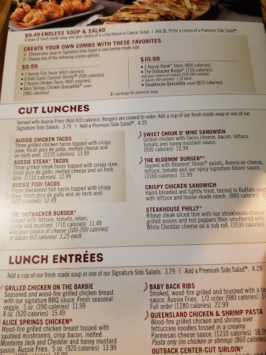 I dont know why Outback gets so many mediocre reviews. It is not even close to as expensive as Ruth Chris, Mortons, The Keg or any of the other high and prime rib or steak houses. How people can compare them to each other is unreasonable. Once again for the price. Outback has always had great steaks, great service for a decent price. I had there prime rib with vegetables and an add on of grilled shrimp and everything was great. For the people who like the Outback grilled shrimp this location still has the remoulade sauce that is awesome sauce they use on the shrimp that the other locations have discontinued to offer on their menu.