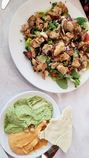 I typically visit here for lunch or take-out. The staff is always very upbeat and friendly. And the food never lets me down. They have a very nice patio as well if the weather permits. Ive sampled a fair bit of their menu, and if Mediterranean food is your thing, you cant go wrong here. If you look well enough, you can find things on the menu for people who dont share the same tastes. And their jalapeno cilantro hummus is delicious with whole wheat pitas. Throw some chicken in it and youve got an awesome light meal.