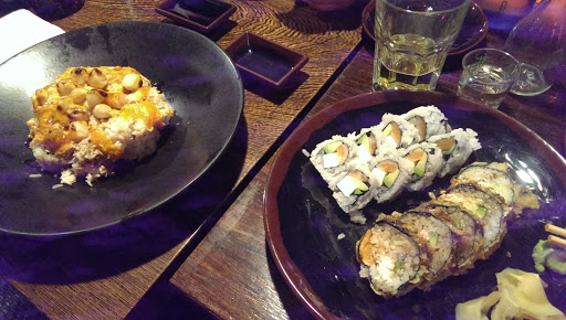 Live right around the corner from here and after moving into the neighborhood was immediately on the look out for good sushi places. First time I went, it was fine. Second time, I was served Salmon that was clearly expired.. Salmon is not supposed to be chewy, stinky, or purple. I politely mentioned it to the chef, and he assured me that is how Salmon is supposed to be. At that point, most people would simply never go again, but seeing as I worked in the industry for a long time, I understand mistakes happen and I understand the Chefs desire to not admit to having bad fish in his restaurant. I figured it may have been an isolated incident, so several months later, I tried again. Once again, things were fine... So I decided to go back a few weeks later, and this time had bad Salmon AGAIN. If youre keeping track, this is about a 50% chance of being served bad salmon. Totally unacceptable. Raw salmon needs to be fresh and handled properly, if its purple, slimy, stinky, chewy, and forces a gag reflex upon biting into, it can and will make people sick! Never had a problem with waitresses or staff. I always leave 15-25% tip even on the times I was unsatisfied. I would love to give Saketini a positive review, but after being served bad Salmon 2 times, and having the chefs refuse to acknowledge that it was bad, I have to let people know: Steer clear of Saketini.