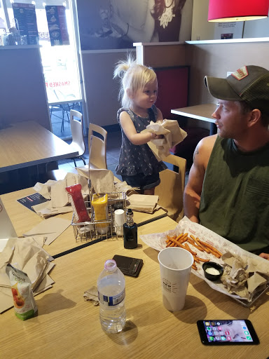 We ate a variety of different burgers and sides and all of them were good tasting. The beef has just a hint of seasoning and was cooked well, with just a bit of sear to the surfaces. All of the burger fixings - lettuce, tomatoes, avocados, bacon, cheeses, etc. - tasted very fresh and actually had flavor, something you dont always taste at burger chain places. We dined prior to the after work/school rush, and only a few people were sitting at the tables when we sat down. There were a few tables that had fries, pieces of bun under them that seemly should have been cleaned by the staff before the evening rush began.