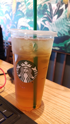 Great starbucks, been dropping in and out for years. Friendly staff, always space to sit or work, and AC is super cold in the summer!!