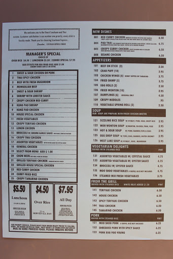Love their peanut sauce. Their menu is seriously big! They have Chinese and Thai. Over a few visits Weve tried: Kung pao, grilled teriyaki chicken, beef and broccoli, crab puffs, chicken fried rice, chicken chow mein, sweet and sour chicken. All were pretty damn good. I dont think this is fancy gourmet Chinese food, but its cheap and I think a bit above average. Ive never been disappointed, Ill just put it that way. The person ringing us up has always been friendly too, whether it was a girl or guy. We keep going back.