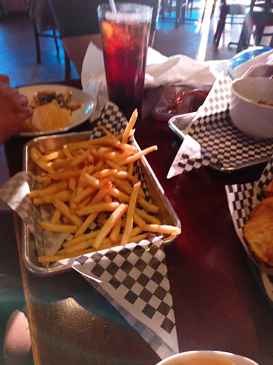 This place is HUGE!! It has a very large outside patio, with couches, fireplaces, multiple large TVs to watch different games on, and a separate outside bar. The inside is massive also. Tons of seating room, and tables arent packed together like sardines, which is great! The inside also has a million TVs all throughout the entire restaurant so no matter where your sitting you can see. Also to mention...they have awesome drink specials especially during the week. Plus great food which says Alot because Im an extremely picky eater! Kid friendly, and my kids love it there! They have a huge treasure box that the kiddos get to pick out of it when you leave. Huge parking lot too!! And they have really friendly staff.