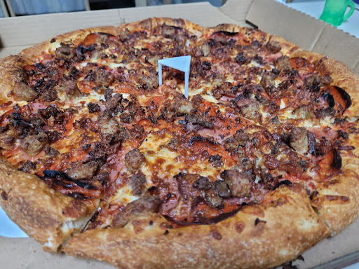 Very friendly bunch of young guys! The area is kind of old plaza with empty stores. Almost didnt go in. This was a first time, they got order wrong I asked for half sausage and got all. The crust is too thin for my taste. It is cooked strange some parts over done and burnt but, the crust didt taste fully cooked. They have a fried crust that sounds intresting. Maybe try that. It wasnt horrible. Worth a try.