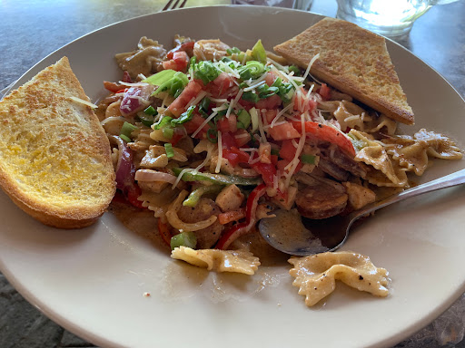 Probably the best choice in town. Of course, there are not too many places to choose from. Ive been here twice, both times t at 6:30couldnt get a table inside. So last year I sat at the bar, this time outside with the smokers. Both times my food was good. But overpriced. Satisfactory quality. Indifferent service. Fair burger, nice fries, This time I had the Cajun pasta with sausage and large shrimp and asked for the scampi sauce- all the sauce on the menu were cream sauces. The pasta was good but was almost $20. Ill probably come here again next trip through Page. Unless a new place opens. So again, I guess this is the best choice in Page, and yes, I enjoyed my dinner.