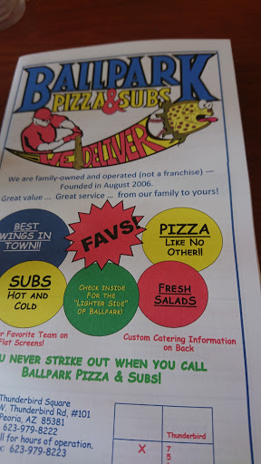 We have enjoyed dinner here several times. The proprietors are extremely focused on providing great service. I enjoy the ballpark look and feel of the place. It looks exactly like the kind of place you want to take a little league team after a big game. The layout is very informal, very pizza-parlor to a tee. The menu offers salads, beer, wings and other non-pizza options. Im a member of two different community-focused organizations and have recommended holding meetings at Ballpark pizza since the meatBallz on 75th/T-Bird closed. Everyone I have talked to enjoys Ballpark for the open table layout, decor and service - Supporting private owner-operators is always my first choice when seeking a restaurant. This one is a perfect local haunt, with outstanding service and reasonable prices. Highly Recommended.