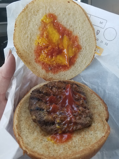 The cashier at the drive thru was very rude. The food was cold and it looked like someone stepped on my whopper with a large shoe before sticking it in the bag. It was completely smashed.