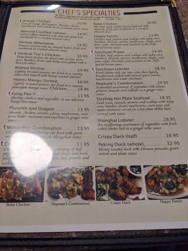 My date and I came in on a weekday so nobody was eating at the time. We were greeted by all the people that worked there with a smile and a welcome so thats awesome! The environment seemed appropriate with music and decorations. The menus were a bit faded on the back though. The servers were on track and always focused on the customers and their needs. We had a guy with a ponytail and he was awesome and funny, took the time to talk with us and recommended some items to eat! In terms of the food, we ordered crab puffs, veggie lo mein, and honey sesame chicken. The food was delicious while not bland nor over greased like other typical Chinese restaurants! They provided enough rice to balance out the meal which is normally a complaint of mine since most places dont give enough rice! I love rice since Im Asian! Actually there was more rice than food in the end! The chicken was crispy and white, just right! The crab puffs were great too with a side of sweet and sour. But my favorite was the lo mein, it wasnt greasy and the taste was spot on. My date loves lo mein and she said its one of the best she tasted! As for the drinks, they were never emptied since they had awesome staff! Will definitely be coming back for more! Thanks! The price is good here if not fair! I dont know why Google puts three $ for the place! Not expensive!