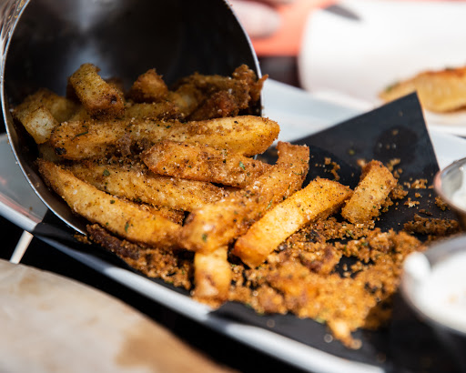 Food was just basic. I had french dip and honestly it tasted something from a chain restaurant. Husband had wings and they were very small. I also was blinded by the sun.