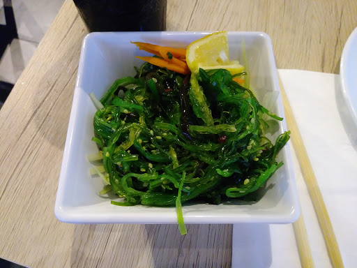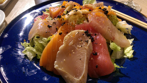The only ding I have for this spot was the service to be seated. Granted, they were busy turning tables, but we werent acknowledged by staff until a table was ready. The place is much smaller than it appears outside. The staff was friendly, and the menu was quite large with a distinct focus on sushi and sushi combos. I have nothing but great things to say about the food and the price. I was here celebrating a birthday with 4 adults and 2 children total. The food was quickly served and the food was phenomenal. My favorite was the salmon combo with rice, salad, miso soup, and a few pieces of sushi and sashimi.