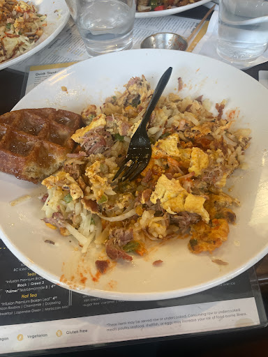 Oh man! Fast service, unique take on classic selections, but nothing elevated to "out of reach", just delicious and fresh! Everything made from scratch, health conscious without being in your face. Sleek and modern. Friendly, too! The French toast is the best ever, and the Huevos con masa (Huevos rancheros on cornbread, with chorizo queso, etc) is killer! Homemade hot sauce, too! Get everything.