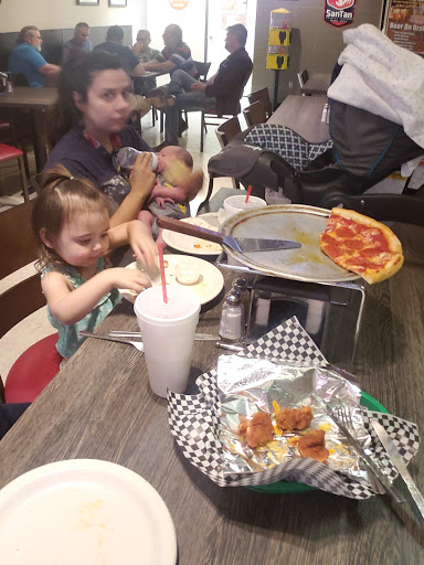 The pizza was good. I ordered a personal cheese pizza at lunch only because the pizzas they had for the lunch special looked very dated. They were just sitting on racks with zero heat applied. I also ordered a 10 piece wings and asked for them to be as hot as they can make them. The guy and his son (who was eating at the lunch bar) laughed and said okay. FYI... they were the hottest that I have ever experienced. The first one went down without any issues... Took a bite of the second one and that is when the heat set in. If you want HOT then try the "Beyond Death". I would have rated this a five if it were not for the outrageously priced beer... $6 bucks for a small beer... NO BUENO Other than the beer price and the old lunch house pie great place. Special thanks to the old lady who brought in 5 little boys who were loud obnoxious and apparently addicted to salt straight from the salt container.