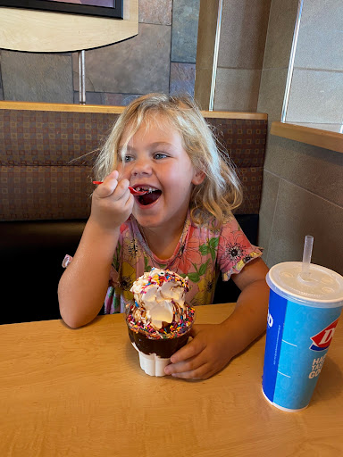 I love the strawberry peanut buster parfait and a heath blizzard. Yum!!!