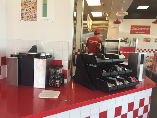 There Burgers and Hot dogs are really good, Use to only go to Two Hippies and Smash Burger but Five Guys as won me over. Great Selection of Soda at this location and the Music is kinda loud at times but Great Staff and Open Late.