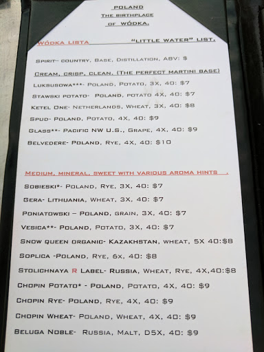 Vodka, hipster themed bar and restaurant. Nice devote with lounge electronica music and some decent food choices. Overall it lacked diverse food menu. However, the bar had some terrific vodka options and nice decor.