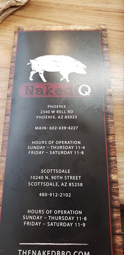 Been coming to this location shortly after it was opened. Orin & his staff always put forth an extra effort towards customer service. If in doubt about a menu item, Orin always offers up a "sample", with a smile. A great owner & manager. Now that he has opened his second location on Shea at 90th St, we visit this BBQ entrepreneur even more, as that location is 1 1/2 miles from our SDL home! Great flavored BBQ, always moist & tender! "NAKED BBQ... We Dont Cover Our Meat"! Give them a try at either location. :) Ken & Debi J. Fast Glass Corvette Club