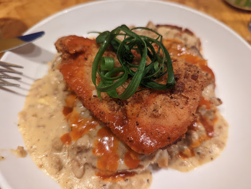 Food was good but a little on the expensive side. The parking is awful! When I got there I didnt want the valet parking so I drove past the booth assuming that there would be parking on the other side. This is typical for any place with valet parking...Apparently that other side was designated for valet parking only and there were NO signs clearly stating that. Realizing my mistake, I needed to turn around, but the parking was so tight that the only way to turn around is to follow the path behind the building and then make a U-turn. One of the valet drivers followed me got out of his car and got snappy, stating that I was in the "valet only parking". I was already in the process of turning around to get out of there, I didnt need that a$$hole to give me attitude. I ended up parking at the funeral home next door. To conclude, the food was good but not exceptional to where you would want to deal with horrendous parking and snappy valet drivers. There are other restaurants with food just as good, less expensive, and BETTER parking. In my opinion, its not worth the hassle.