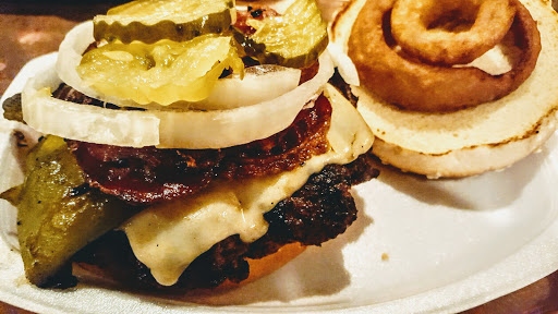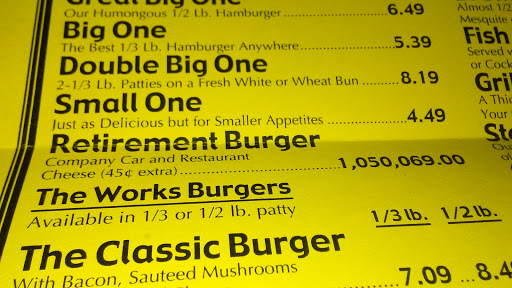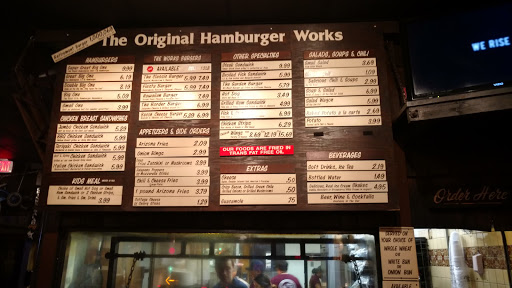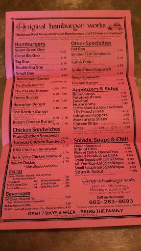 Since I was a kid in the eighties, Ive come here first with my father now with my husband and many friends over the years. They cook over an open fire mesquite wood grill everything has thats a fire-grilled flavor. Ive tried their wings, garden burger, chicken breast sandwich, fish and chips, grilled fish sandwich, the salad bar, soup and of course their grilled Burgers. Everything Ive tried with the exception of the garden burger was homemade and delicious. They have a chuckwagon style bar where you at the toppings that you like (lettuce, tomato, jalapeno, peppercinis, onions and condiments). Go try The Original Hamburger Works with your family and start a tradition.