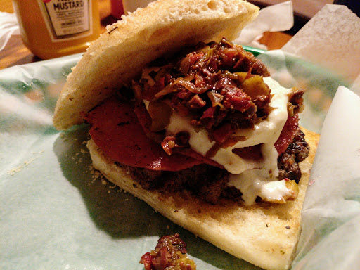 Was looking for something new, and this place seemed unique and had an amazing menu. The atmosphere was really good, there was indoor and outdoor seating, and the servers are fairly nice. Objectively speaking, it took quite some time for us to get our food after ordering, about 20 minutes, which isnt necessarily anyones fault in particular. Just an observation. The food itself was the only disappointing part of the experience. It was a little pricy, but I was expecting a big loaded burger in return. Unfortunately it was just two small McDonalds-esque parties on a bun with a tomatoe and small pile of overdone sautéed onions for $9. I encourage people to try it for themselves, but this was just my particular experience, and I likely wont be returning.