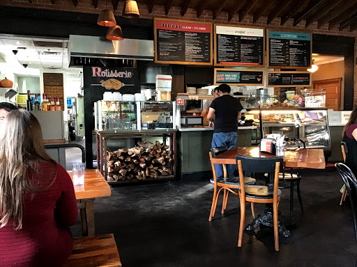 Great vibe, fresh food, awesome service! We came here for dinner before First Friday last night, and it was so good that were coming back for breakfast this morning. We started with the Eat the Rainbow salad, full of garden-fresh vegetables and three dipping sauces on the side. Their kids menu is great (not the usual nugget or hamburger fare, although they do have grilled cheese or almond butter and jelly on good bread), and only $3. Our ten year-old ordered two kids meals: 1) half a grilled cheese sandwich with grapes and pineapple 2) a large bowl of fresh berries, melon and pineapple. Its nice that they donate two meals to a charity for every kids meal purchased. I got the rice bowl: more fresh veggies, avocado and rice with sesame. My husband got a half rotisserie chicken. Its happy hour from 3-close, which was a nice bonus. They also have unsweetened, flavored iced tea. Our server was really friendly and accommodating. .