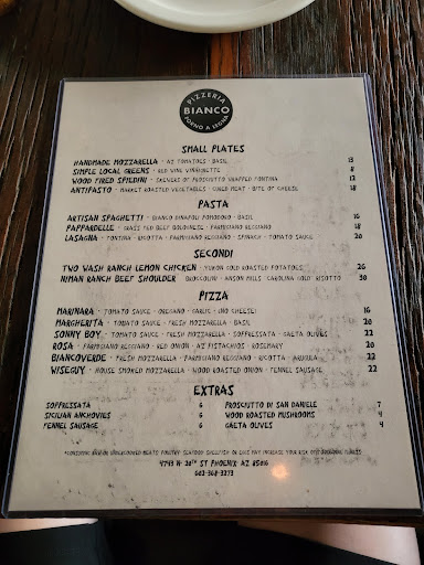 Pizzeria Bianco leaves us feeling conflicted. After having eaten at both this location and their Town & Country offshoot several times (Phoenix doesnt leave us with too many options), we can securely say that the food is almost always more than satisfying, and even when its not, its not abysmal, just on the plainer side of things. The sourcing quality varies a bit too much for our liking – the flours that serve as the base for all their breads, crusts, pastas and the like are made from local Hayden Flour Mills ancient grain flours (fantastic), they offer grass-fed beef but for only some of the dishes (why only some?), and have a few organic ingredients amongst others of more ambiguous quality throughout the menu. Obviously Bianco recognizes the value in this stuff, so its a little disappointing that they dont find it worthwhile to commit more fully. That said, we appreciate that their breads, crusts, pastas and sauces are all made in-house (or in one of their three houses, rather) – an unfortunately rare feature that most certainly helps shape Biancos distinctive flavour. The Marinara pizza is wonderful, especially with added wood-roasted mushrooms. The Rosa, though far from plenty of peoples idea of what a pizza should be, is similarly scrumptious, but should be eaten before the parmesan has had time to cool and turn to rubber. Seeing other reviewers discredit Pizzeria Biancos quality simply because theyve never had a pizza without sauce is massively depressing, and helps us understand why its now become common for our servers to clarify at every meal that "such and such pizzas do not come with sauce." Despite being ultimately a single entity, the two locations (the third being not a Pizzeria, but a Pane) are pretty different. The most notable difference being that the original location seems to specialize in pizza, while Town & Country specializes in pasta (though they too offer pizza, its just never quite as good). The service Downtown is decidedly worse, with most of the staff being at least unprofessional, if not rude - whereas at Town & Country, more often than not, its excellent, or at its worst mildly awkward but sweet. Downtown, they dont serve complimentary bread with every meal, T&C does. The list goes on. Though Pizzeria Bianco is not without its problems, it does keep us coming back. And for good reason – this location serves great pasta, and the fact that theyre handmade in-house from local ancient grains seals the deal.