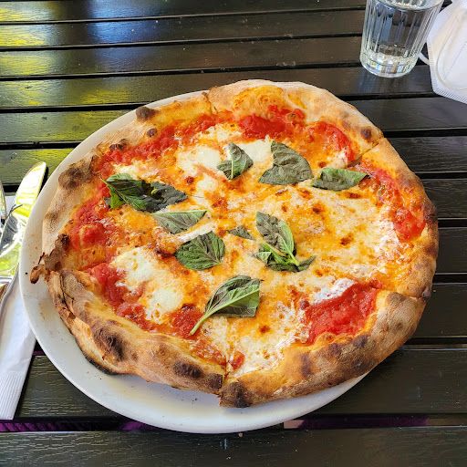 Best Pizza Ever, Hands Down I had some shopping to do at Town & Country Plaza, but hadnt had a thing to eat all day. I saw the sign for Pizzeria Bianco and decided to see if they were too busy to accommodate me. (I had heard that there was always a line to get in.) Well, it was apparently my lucky day. When I entered the restaurant, I was promptly shown to a nice seat at the bar and provided with ice water and a lunch menu. The menu wasnt large, and my eye immediately focused on the pizza selections. There were 6 pizza offerings, 3 with red sauce, and 3 without. I wanted something straightforward, so I settled on the pizza margherita (tomato sauce, fresh mozzarella, and basil) and asked them to add garlic. I was assured that the crust would be thin and crisp. I also ordered a glass of the house red wine, and settled in to wait. While I was waiting, the couple next to me generously offered to share their pizza with me since they had more than they could eat. I let them know I appreciated the offer, but that I was reserving my appetite to be able to finish my own pizza. It came out moments later, and looked perfect. Biting into my first slice was even better. The crust was super thin, crisp, and tasty. This was not going to be one of those pizzas where part of the crust would be left on the plate. Every bit of each slice demanded to be eaten. the tomato sauce was just acidic enough, and married well with the fresh mozzarella, basil, garlic and the crust. Each mouthful was light and delightful. There was nothing heavy at all about my pizza. I was glad that I had kept it simple rather than ordering a pizza heavy with ingredients. Pizza devoured, I became curious about the dessert offerings. I hadnt seen any on the menu, and so had to quiz my server about the possibilities. I settled on a pear tart, garnished with a dip of nutmeg Italian ice. The pear tart was nice, but the nutmeg Italian ice was out of this world. Yum!!! It almost tasted perfumed with the nutmeg, and slightly custardy. I didnt even need the pear tart. I have to go back again for the pizza, but I dont intend to leave without having the nutmeg Italian ice again. My entire lunch was such a treat. This is now at the top of my list for best pizza. The service, while very friendly, was a little spotty. I wasnt sure at several points, who was supposed to be taking care of me, and about the time I finished my pizza, everyone disappeared. I had to solicit someone to discuss dessert, and again, to pay my check. I enjoyed my meal so much that I really didnt mind too much. ------------------------------------------------Second Visit 9/8/15------------------------------- OK, I am now still a fan of the pizza, but NOT a fan of the service. It was worse than spotty this time. I was able to place my order, but then there was apparently a shift change. Someone did bring me the piping hot pizza I had ordered - and it was perfect again - but then no check back to see how it was, no service period until someone finally noticed my plate pushed away and came to take it around 10 minutes after I had finished. It wasnt busy, there were all kinds of staff standing around across the room talking to each other. I stand by the pizza, but the service was so poor that I cut way back on my tip. Reduced my rating to 4 stars from 5.
