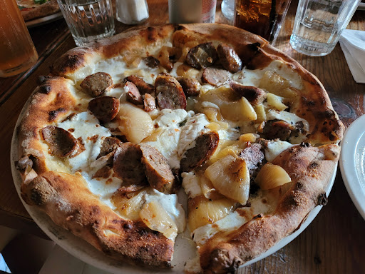 The pizza was the best Ive had in years. I called to order carryout and was told 10-15 minutes it would be ready so I rushed over to try and get the freshest I could get it. I arrived in about 20 minutes and was told it wasnt ready and was invited to sit at the bar to pay and wait. After waiting 15 minutes after sitting down, waiting, and paying...another couple came in and sat down also that had ordered takeout. They were promptly greeted and bread w/ dipping oil was brought over to them upon first greeting (it was not requested). The busser said it was to offer them something while they waited for their pizza to get done. "Why wasnt I offered bread?" I thought..... I waited another 10 minutes before asking the hostess how much longer. She informed me they had some large parties while delayed the other orders. Ive worked in the restaurant industry for many years so I understand how this works, but expressed my disappointment because the person whom took my order over the phone said it would only be 10-15 minutes. There appears to be either some miscommunication or the person didnt even know (or care) to check with the kitchen when I called. I ended up leaving to drive across the street to buy a bottle of wine to take home with the pizza which took about 10 minutes total and the pizza was ready for me when I got there. Back to the good part......the "Wiseguy" pizza was amazing. I scarfed it down as fast as I could. Im still going to give this place another shot as Im hoping I was a fluke and not the norm.