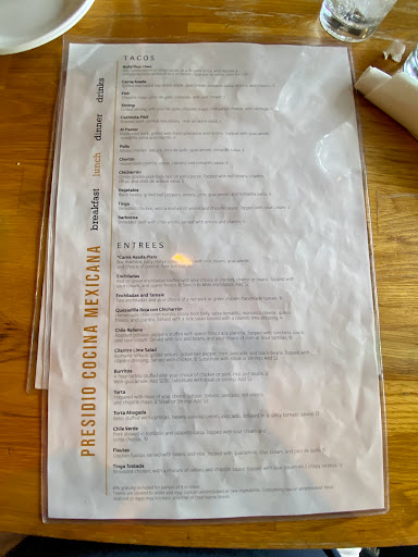 This is absolutely devine. We got a late start and had the Huevos Rancheros which are Devine. It comes with beans and homestyle potatoes that have chorizo embedded. Gosh we were full for the whole day. The coffee is gourmet nice and strong and hot. I think it stayed hot the whole time we were there. First they start you off wth a guacamole on the house. Ive lied in Texas and Cali and this is the best traditional (not Tex-Méx) Huevos Rancheros ever! Definitely give Presidío a try you wont be disappointed.