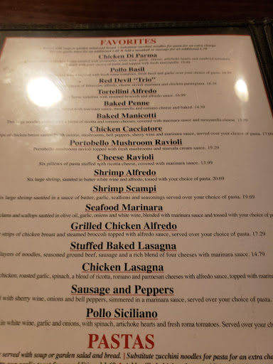 Note: this 2☆ post sadly was edited from prior 5☆ post: We Loooove...(D) Red Devil!!! The food is (was) the best & staff is (Always)wonderful too! Very kind, they are...♡ 7/24/16 - The concern is, not having consistency in their product preparation, "PIZZA"... We just moved here to Az in March to discover this 1960 established family owned Italian restaurant...Red Devil... Today, once again we decided on there ultimate/ supreme pizza, the one with all toppings, plus we personally like to add artichoke hearts...We noticed our visit the time before our pizza was a tad soggy in the center & light on the sauce...compared to our very first "Perfect Pie" experience the time before...still tasty though... So, anyway this time we decided to ask for a little more sauce & perhaps, it be in the oven, maybe a minute or two more... Well, if you can believe it...it came out extra burnt, hard ( crack your teeth hard), dry & super light toppings, which were randomly fixed on one half of the pizza...No love, sloppy...remember, those added artichoke hearts? We ended up with literly two skinned pieces throughout the whole large pizza, we think so or maybe it wasnt... Im aware we all have bad days, but dont take it out on our pizza...geez!! Very upsetting lunch for my husband & myself... With not much of a complaint, it was obvious, we just wanted to leave... They very kindly gave a percentage off the bill plus of course no charge for the missing artichoke topping...We did leave the whole half of the pie...No Love Pizza, Pizza No Love Us, No More, No More, No More...lol! Guess, we will have to seek out a new place...Bummer!!!