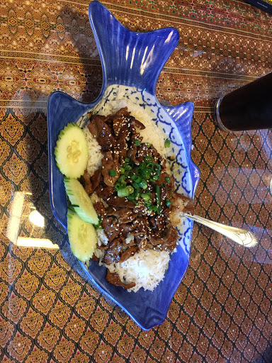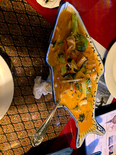 Really outstanding Thai food. I came here a couple of times within a short time frame. They have a very reasonable good lunch buffet for I think about $10.00 + tax and tip. For dinner its about $15 to $17 with tax and tip for a full entrée, and enough food left to go for another meal the next day. The taste is.. Im sure.. just like it would be in Thailand, it seems like it would be very authentic. They can make it with as little or as much spice as you want. I think #2 is about right for me that has some spice but #5... I have heard #5 is very hot and spicy and probably not for most of us.