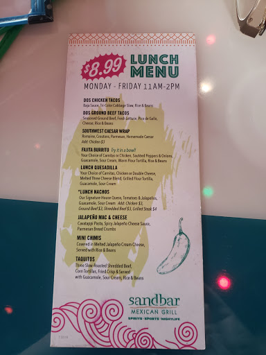 We just finished our meal at Sandbar, Desert Ridge, and were extremely disappointed. We will NOT return. First the GOOD NEWS: (1) The queso dip was great, though the accompanying chips were nothing special. (2) The mini chimis appetizer was also quite tasty. Now the BAD NEWS: (1) We had two orders of fajitas, both of which were sadly lacking in chicken, though overflowing with onions and peppers to make the plate look full. We were digging through the layers trying to find the few pieces of chicken underneath. (2) The waiter did not write down our order, and one dinner came misprepared. The corrected order did not come until the others had completely finished their meals. (3) A side order requested at the time of the original order also did not arrive until the corrected meal came. (4) We were quoted a price for the side order, and were billed double that amount, as well as an unexpected extra charge for a single additional tortilla requested for the fajitas. There was no compensation offered for the meal or the side that were served after everyone else was finished eating. (5) The price was too high for the amount of food actually provided. (6) We sat on the patio in pleasant weather, but smokers at the table next to us polluted our air. (7) There is no patio lighting, and we not only had difficulty seeing our food toward the end of the meal, but we had to pull out a flashlight to take care of paying the bill. (8) Sandbar is loud. Adios!