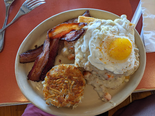 Our party of 4 went here for breakfast on labor day. We had a 30 minute wait before being seated. I had the duo of eggs Benedict, the Benny Goodman and the chili Verde . Both were excellent. Everyone else in the party raved about their meals as well. Our waitress was kind enough to bring us over a sample pancake with pecans and ginger butter. I dont have much of a sweet tooth but it was easily one of the best pancake Ive ever had. However, It was so decadent that i would caution getting a whole order as your entire meal. I would instead get 1 on the side or split an order. Everything here was great, from the service to the food. The prices were also very reasonable. Well definitely be back.