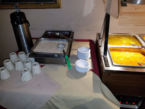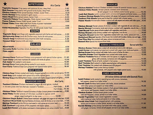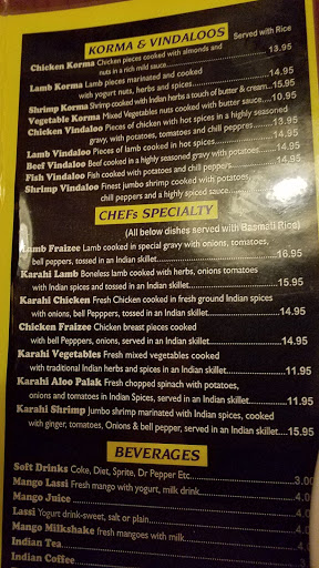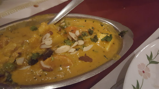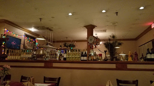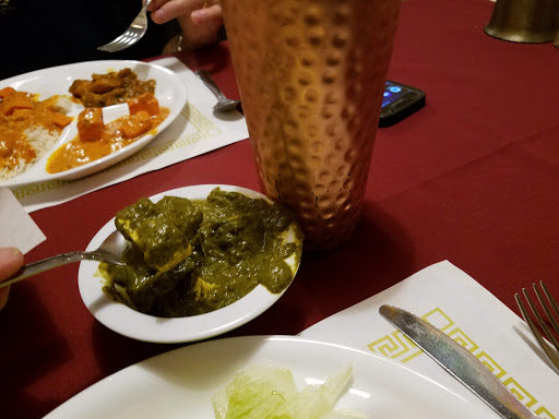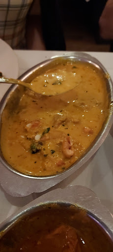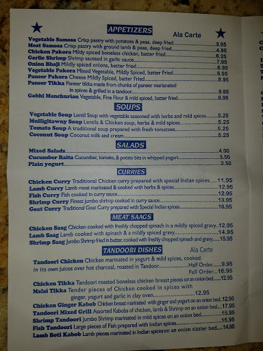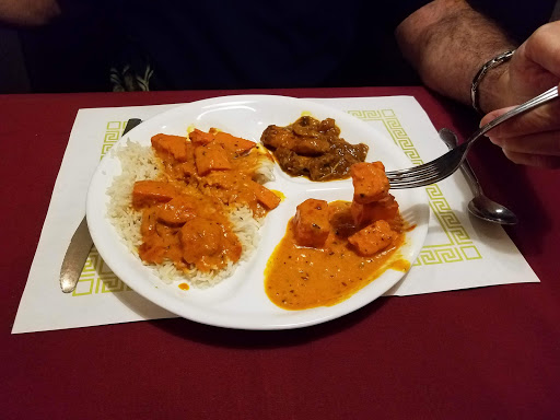 Looks very nice from the outside. Filled with Indian objets darts inside. Neat, clean, and strong spices not permeating the place. My table was the third from the front along the side where the buffet is. Actual cloth table covering and napkins. Small light(s) on every table. Flickering hanging lamps over each table on this side were annoying. The first person to take my order didnt seem to understand that I wanted one order to eat in and a different order to take out. The second person took my order and it all turned out fine. However, the food was disappointing. Very oily rice pea pilau with large chunks of green pepper. Chicken makhni pieces had gristle and cartilage in several bites. Waitress told me that this "meat is dark meat and the kitchen people cant feel the gristle through their gloves". The pastry for the vegetable samosa was actually tough in the corners, not flaky anywhere, and the pea and potato filling was smushy. The salty lassi was excellent. With the take-out order, they didnt include a naan that I ordered, which I didnt discover until I was already home. But they took10% off the bill because I mentioned the gristle in the chicken makhni - I didnt ask them to do it so I appreciate that gesture. My first time eating here, and I will try once more because the atmosphere is pleasant, and the staff are very friendly and courteous. By 6:15, the phone for carry-out was ringing about every 5 minutes, so there are many who like the food. If youre used to Indian food in Sterling Hts MI (huge Indian and Pakistani population) or D.C. or NYC, the meal tonight was truly no more than 3 stars at best. Worth a try and see what you think. p.s. the entree does not include rice. Jasmine rice is not on the menu. They had never heard of cilantro chutney ! ?