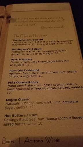 The only reason this place doesnt get 5 stars is because the food is lacking. Its all just jerk seasoning and labeled gourmet. They had this pork belly and guava dish that was to die for but the only good dish they ever came up with somehow found its way off the menu. Other than that, just spicy for no reason at all, which (I heard from a native Jamaican) is how it is in Jamaica - very bland and spicy for no apparent reason. Other than that.. The other 4 stars comes from 3 things: the service, the vibe, and the cocktails. 1. The service - all cool people dressed to the hilt who take your considerations seriously and will provide you with an awesome experience and appropriate suggestions. 2. The vibe - modern, yet very chill. The indoor is low volume, low lighting created for intimacy, both indoors and out. The patio has wood, metal, water, plants, and if you feel so inclined, a cigar as well. 3. The cocktails - whatever you order here is as if God himself dropped an angel on earth just to make a signature libation just for you at $10 a pop. Theyre incredible to say the LEAST. I cannot emphasize this enough. Please understand this. The bottom line: Go here to get a drink and while youre there still trying to comprehend the fact that you will never find another cocktail as good as these peoples, you may then be inclined to order food if you are hungry. If you do, please be prepared that the palate cleansers are the highlight of this experience more than the food itself. And then when you are all done, grab yourself a cigar and thank the Lord for the beautiful life hes given you. Because this is as close as youll come to island time in this arid desert of a city.