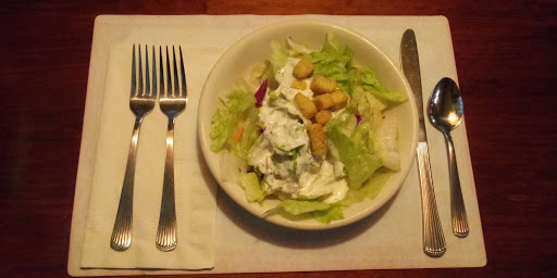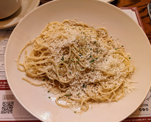 Been here many times because someone in family likes it. The food is pretty bland. Recent visit was a party of 12. The service was average at best. I like that the meals include salad, bread and spumoni, but the salad is poor quality, bread is warm but just white bread and average. The spumoni is good though. My meal was chicken parmesan , really tasteless, no parmesan cheese either. One fatal flaw, bathroom had no soap or towels when I visited at 6:00pm, major health violation.