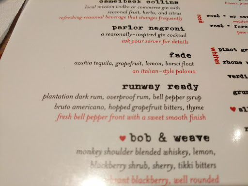 Went to the Parlor, for my cheat meal. Had a delicious pizza - their fennel sausage is SO tasty and absolutely loved their cauliflower app and my favorite thing was the tiramisu... just an FYI, i am a tiramisu fiend, and when I find a good one- I rave about it. If you want fresh craft pizza, tiramisu that is on-point and an atmosphere that is unique- I highly recommend The Parlor. They have a great Happy Hour with cocktail, wine, sangria and beer specials, along with food specials for small pizzas, appetizers ( like their yummy calamari).. but what I liked most is the story behind the place. Employees grow a lot of the seasonal herbs in their own gardens and the place itself is a reconstructed 50s hair salon ( if my memory serves correctly). I thought it was so cool that they reclaimed some of the original wood and created the tables and I loved that they put their background story on the tables. Its the little details that made my visit so nice. Keep it up!