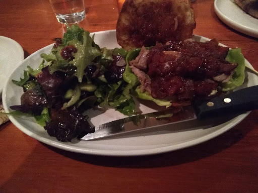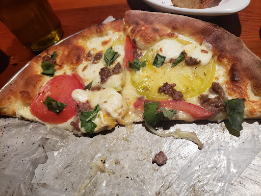 Greasy is the only way to describe my experience, and not even the good kind of greasy you expect from pizza. I ordered a cheese plate, 3 different types of cheese, that were wonderful by themselves, and would have paired nicely with the condiments, except the bread was drenched in griddle lubrication and charred burnt fragments. I also had the Funghi pizza, which again by all accounts should have been delectable, but alas greasy. If corn oil can overpower the flavor of truffle oil you have a sorry combination of flavors happening in your pizza. I wanted to have a fantastic time, the reviews seemed to hold up, the location was convenient and the ambiance was delightful, except as a single top they stuck me in the furthest corner of the restaurant behind the wine rack.