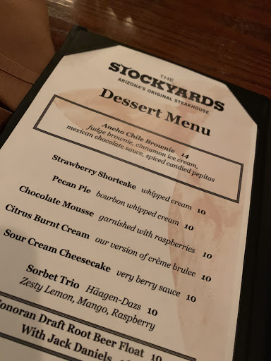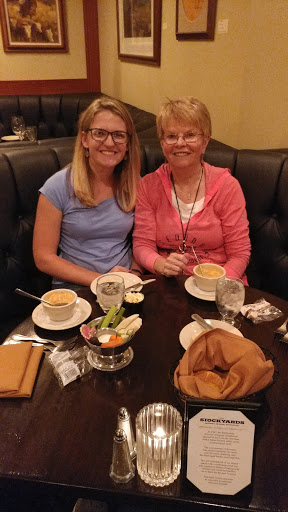 I must say this was our 2nd time to the Stockyards Restaurant and we were much more impressed this time than when we came during Restaurant Week last May. We were in the back dining room which was lovely, very old world western and possibly had lots of original late 1800s decor. Service once again was terrific, Parker, our server who was also our server when we were there the first time, once again awesome., She has a great personality and makes you feel at home. The biscuits and corn bread with the honey butter thats served on the side is wonderful and I could easily eaten several baskets of them. The fresh vegi relish tray with ranch dressing is a very nice touch. My husband and I shared the Prime Rib for 2 which was huge and we actually took enough home to have lunch the next day. That entree comes with soup or salad and sides of vegetables, whipped potatoes and the whiskey sweet potato mash. I had the cup of steak soup very good, very chunky and my husband choose the salad which he really liked commenting that the Italian dressing was very good. We brought my Mother who ordered the 8 oz prime rib and she thoroughly enjoyed hers, she also had the dinner salad with Italian and commented on how much she enjoyed the dressing and she also got the whipped potatoes and like it. The Prime Ribs were perfectly cooked as we ordered them, ours rare and my Mothers medium rare and all extremely tender with a great au jus and my husband enjoyed the fresh horseradish. We went for my birthday and I received a complimentary dessert so I choose the pecan pie with bourbon whipped creme. We shared the dessert and had a hard time finishing it because we were so full but it was delicious. We definitely will return.